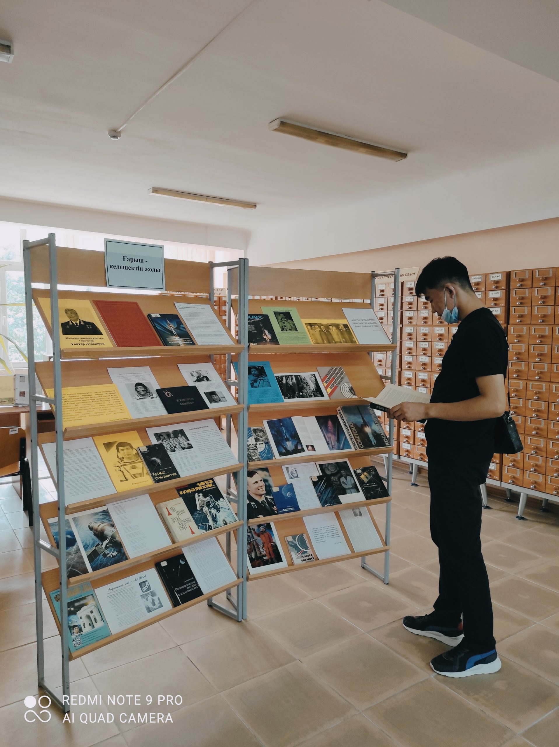 Ғылыми кітапхана «Ғарыш-келешектің жолы» атты кітап көрмесін ұйымдастырды. Көрмеге ғарыш туралы, Тоқтар Әубәкіровтің өмірбаяны жайлы материалдар және Байқоңыр ғарыш алаңы жайында мәліметтер, қазақтың ғарышкерлері туралы қосымша ақпарат көздерінен алынған материалдар қойылып, оқырман назарына ұсынылды.