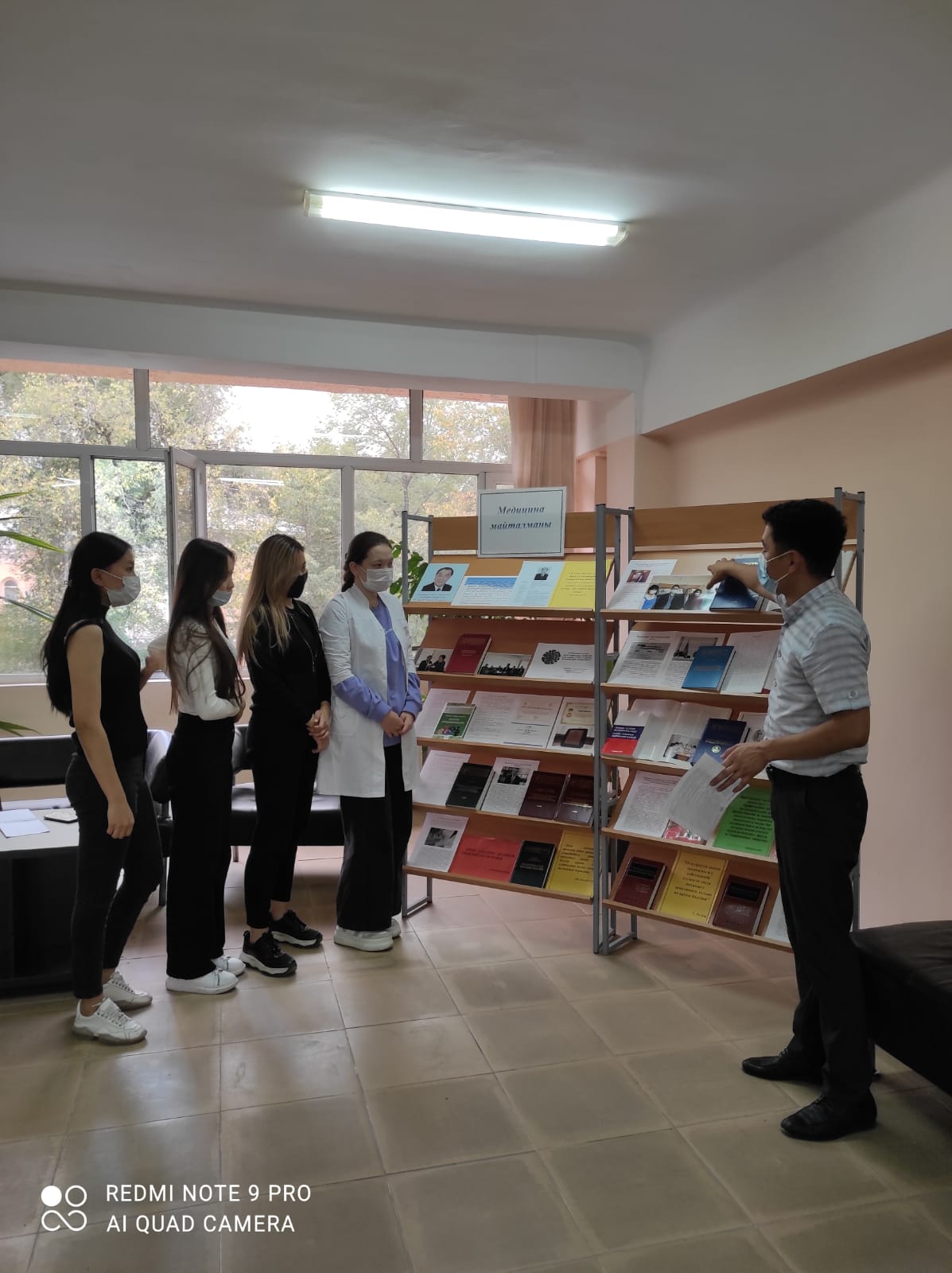 Кітапханаға келген оқырмандар, профессордың жасалған жұмыстармен қызыға танысты. Өйткені, қәзіргі таңда жаһандық пандемия кезіндегі өзекті ақпарат екенін білеміз. Фармация мектебінің оқытушысы Макашева Н.О. және ФӨТ 19-003-1К 3 курс студенттерімен профессордың жұмыстарымен танысып ойларын талқыладық.