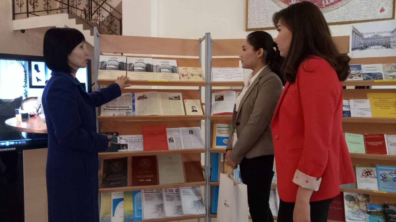 К этому мероприятию в холле театра «Concordia» Научной библиотекой КазНМУ им. С.Д. Асфендиярова была организована выставка «Ақанов оқулары: денсаулық сақтау және медицинаның өзекті мәселелері», где были представлены все научные труды Аканова Айкан Акановича.