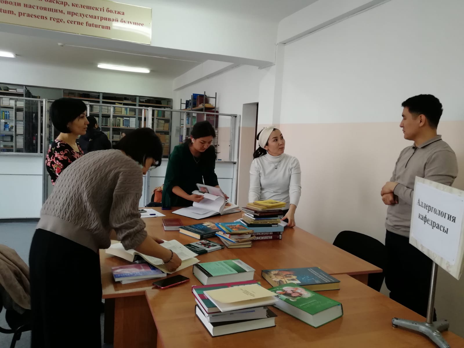 Кафедра оқытушылары университет кітапханасына келіп түскен жаңа әдебиеттермен танысты. Кітапхана сайтында ұсынылған Ғылыми кітапхананың жаңа ақпараттық ресурстарға қолжетімділік және Sirius, КАБИС, виртуалды кітап көрмесі, медициналық журналдардың виртуалды көрмесімен танысты.