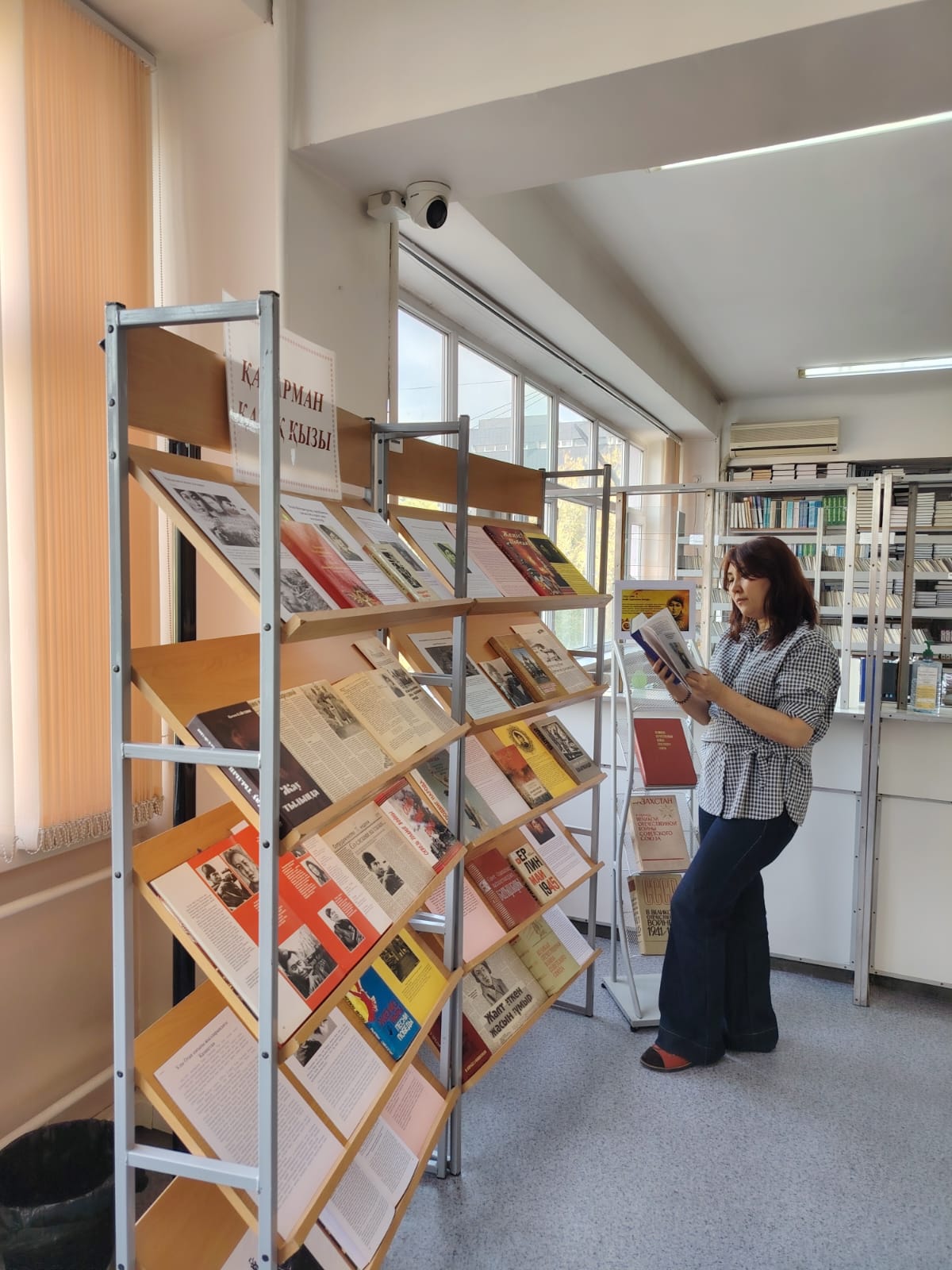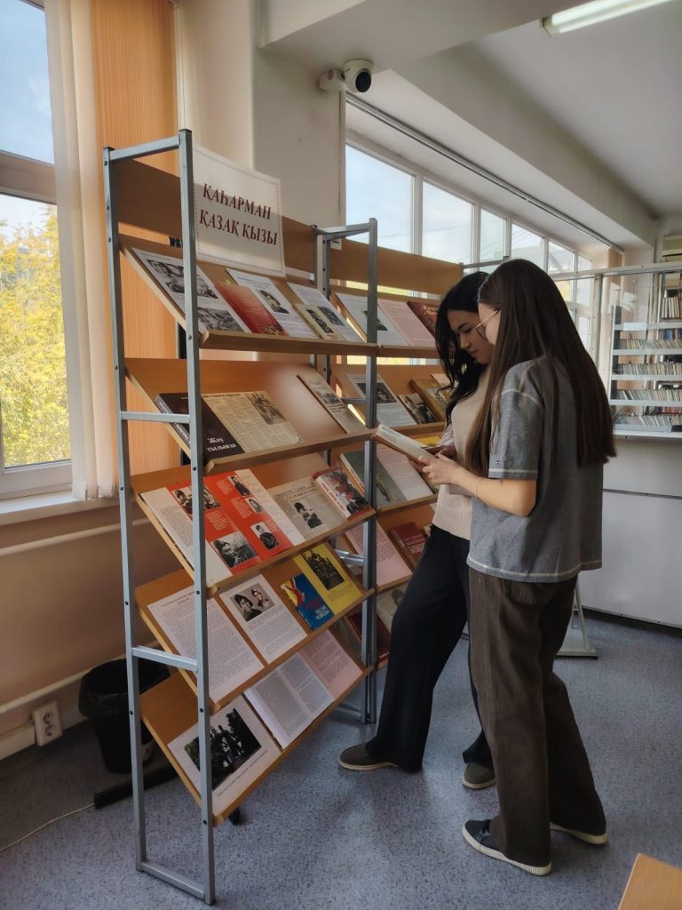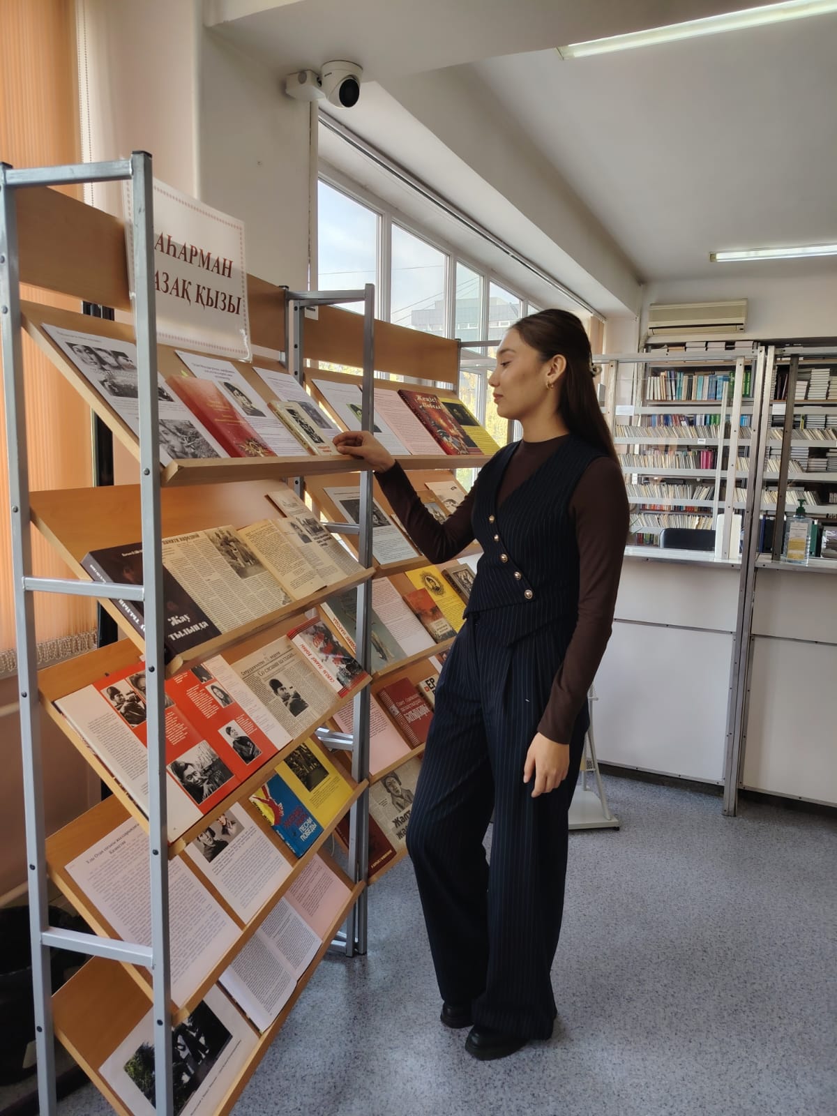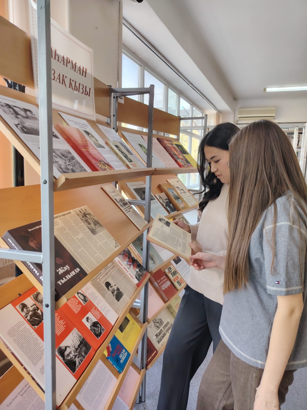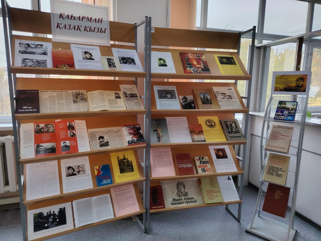 Ғылыми кітапхана, үшінші қабаттағы ғылыми абонементте (330-кабинет) Ұлы Отан соғысының аңызға айналған сұрмергені, Кеңес Одағының Батыры – Әлия Молдағұлованың туғанына 100 жыл толуына арналған «Каһарман қазақ қызы» атты тақырыптық көрме ашылды.