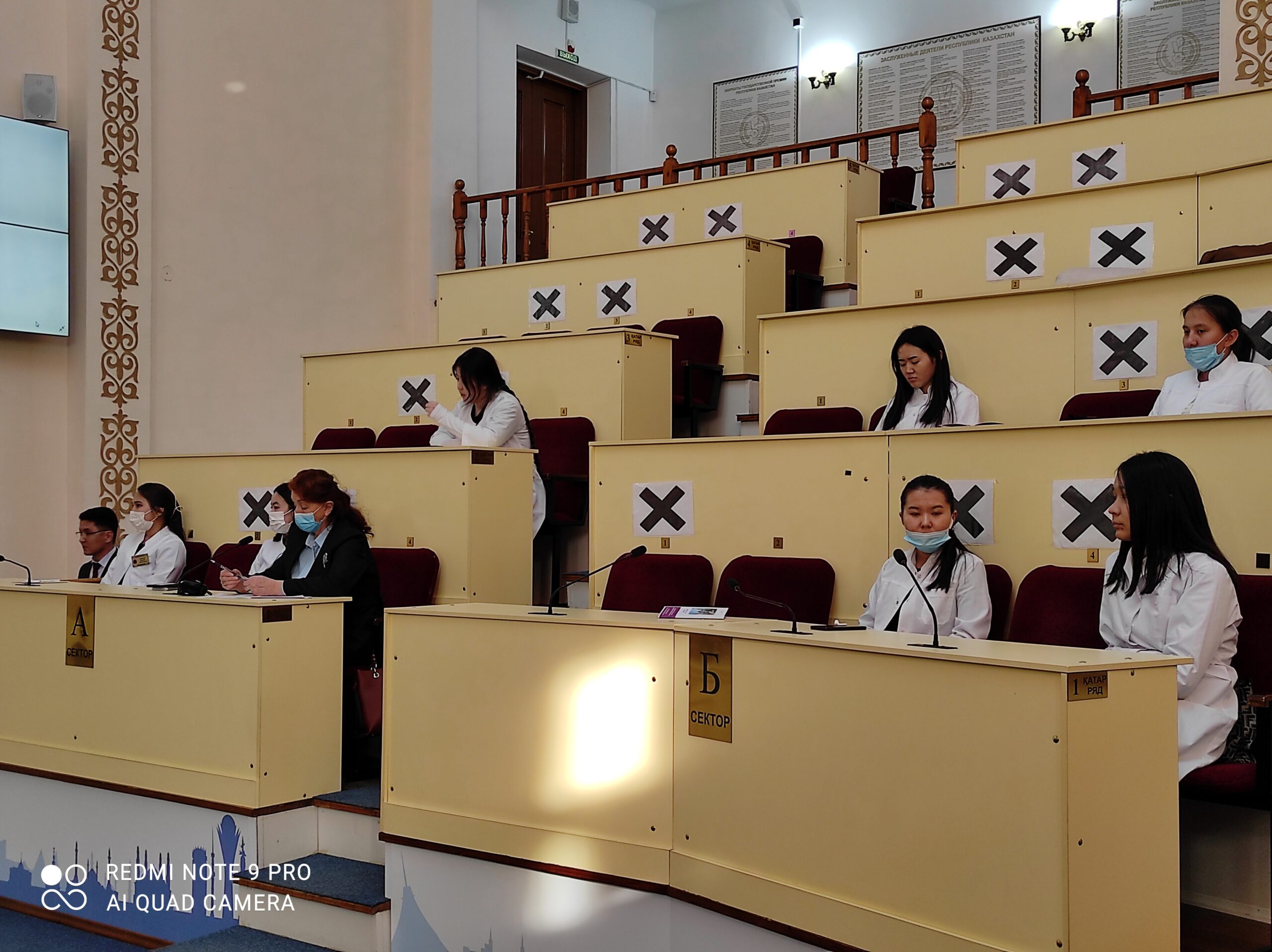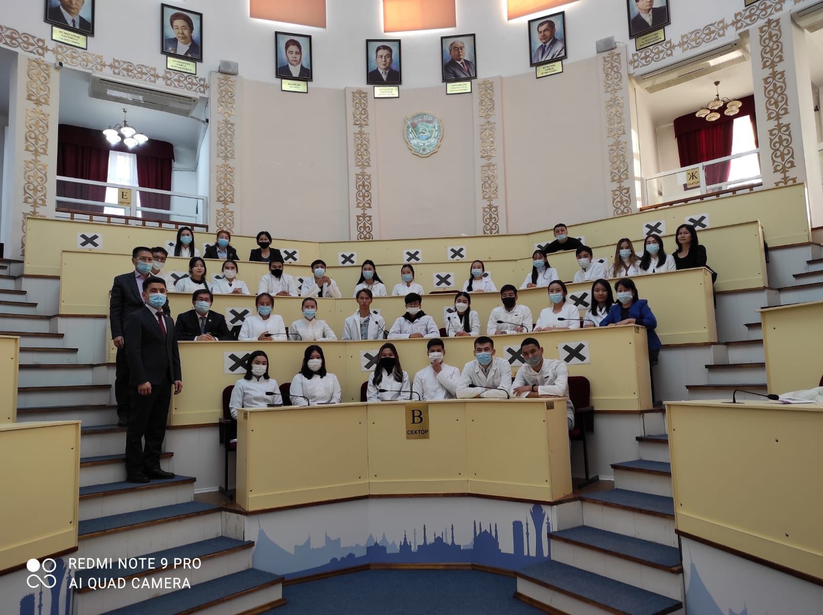 Руководитель Научной библиотеки Модовов Н.А. в ходе встречи ознакомил студентов, что в библиотеке КазНМУ на 3 этаже, №330 каб. открыли уголок «Парасат жолы».