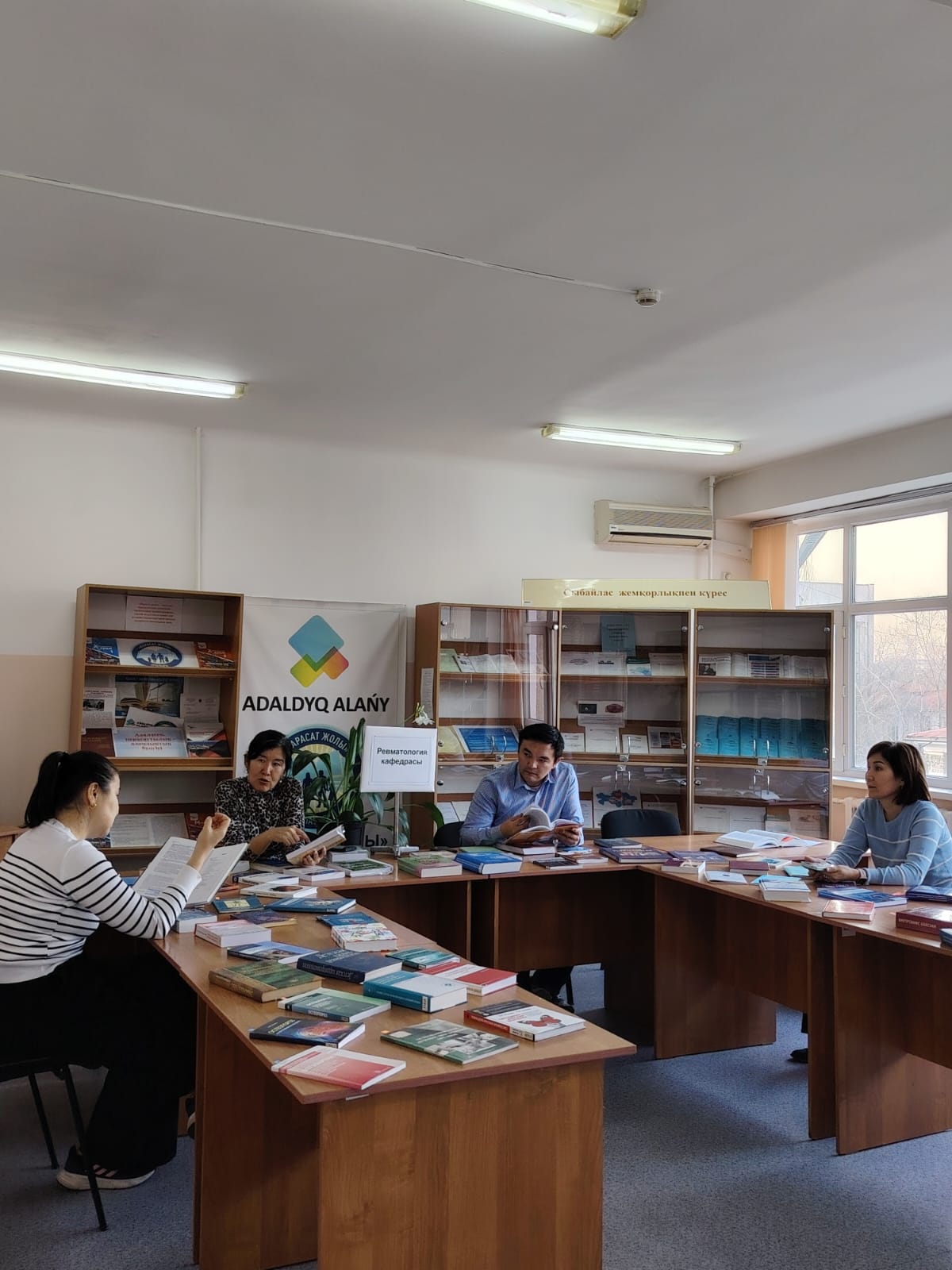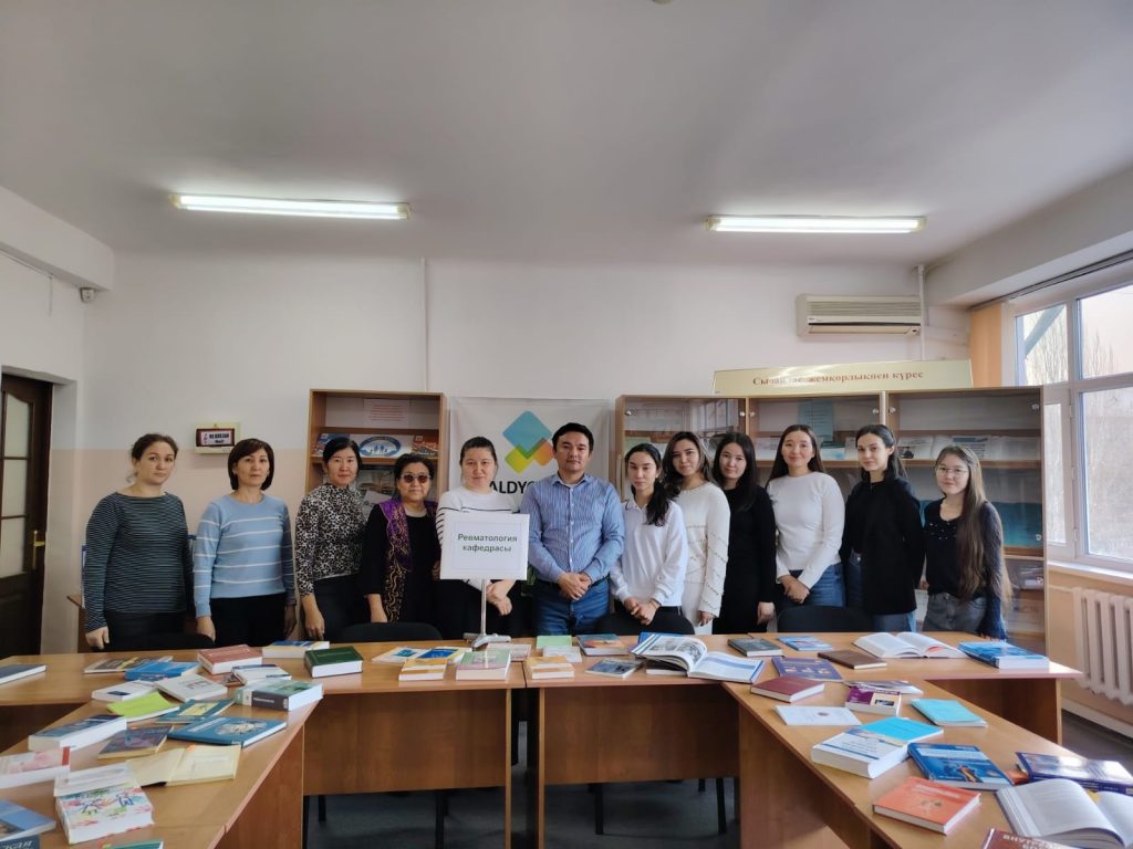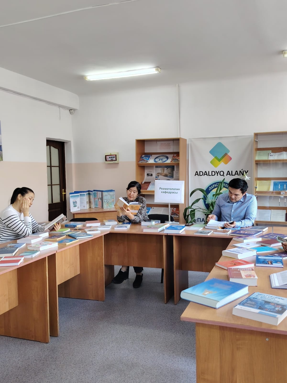 В рамках встречи преподаватели кафедры получили возможность ознакомиться с новыми поступлениями литературы, включая современные учебники, монографии и справочные издания по ревматологии и смежным дисциплинам. Также был представлен обзор устаревших учебников, находящихся в фонде, и продемонстрирована литература на казахском и русском языках, что позволило сотрудникам кафедры оценить актуальность и полноту имеющихся материалов.