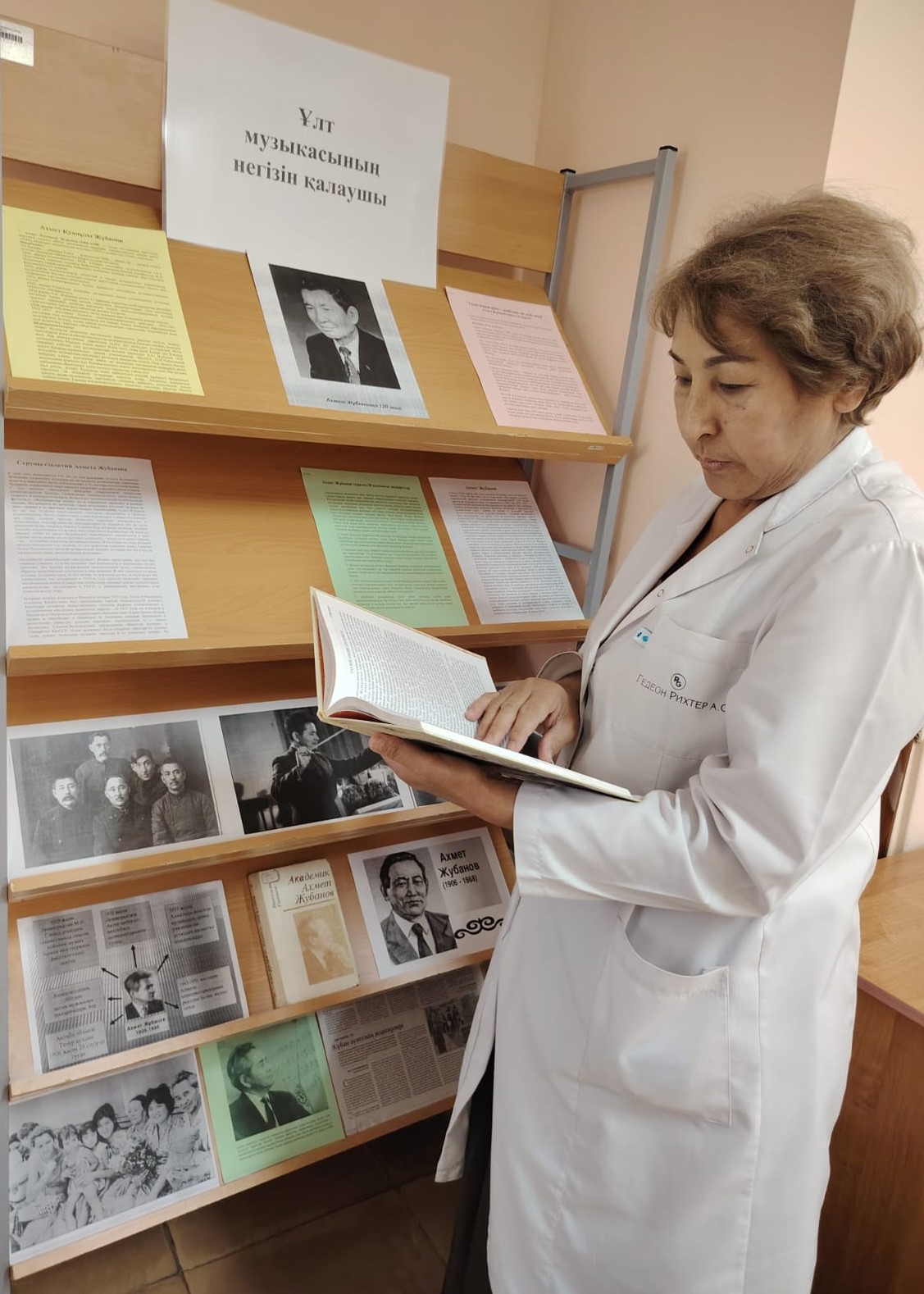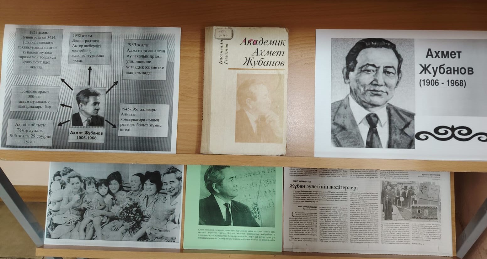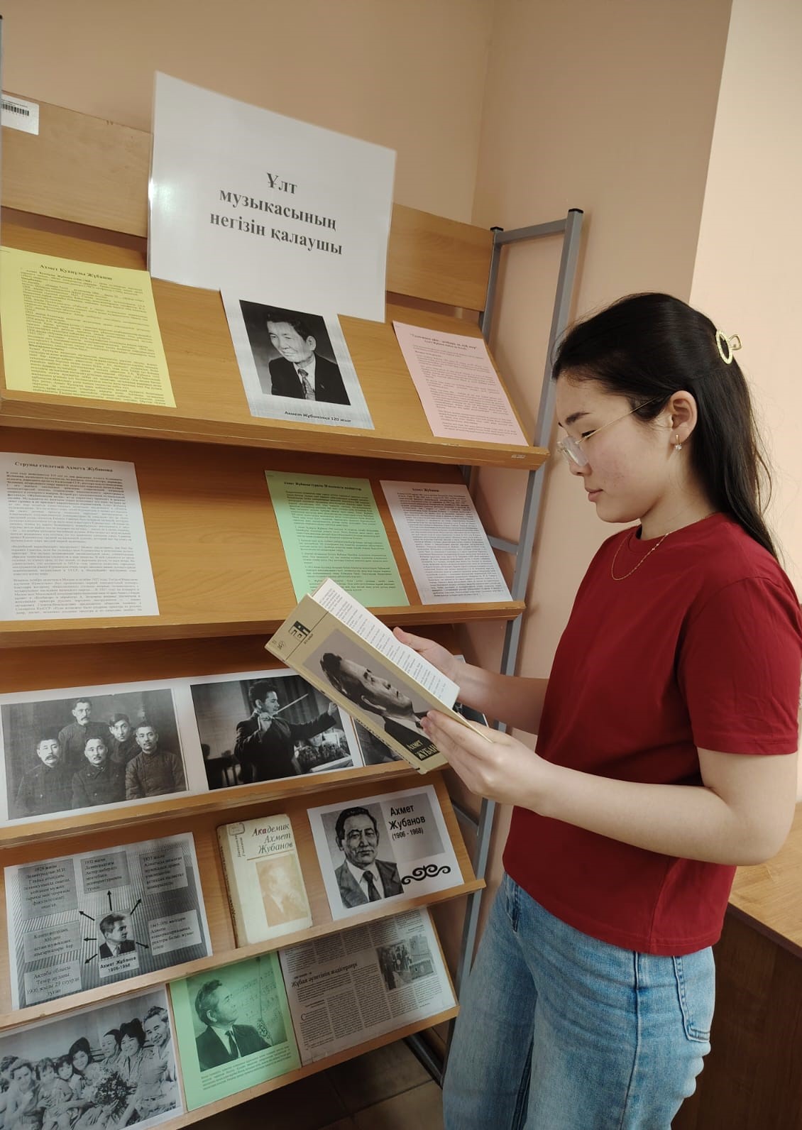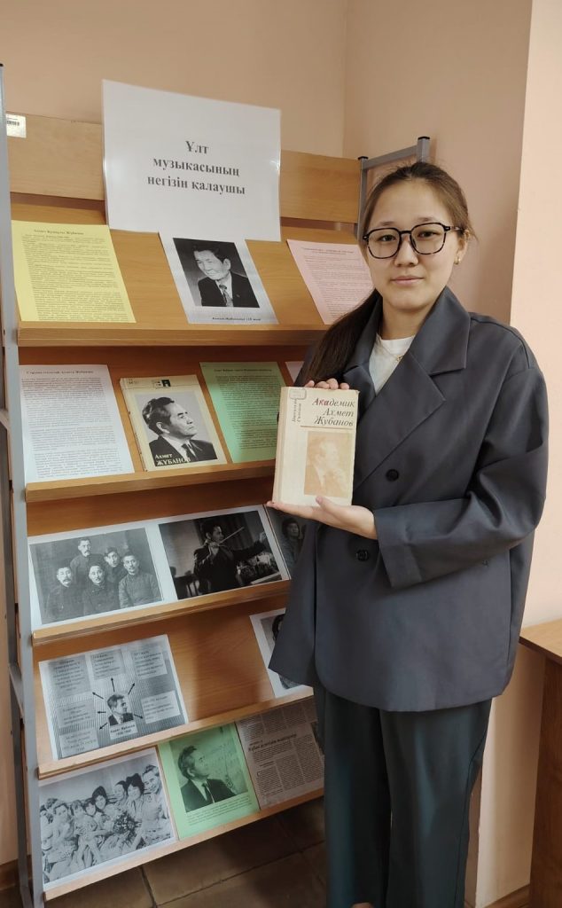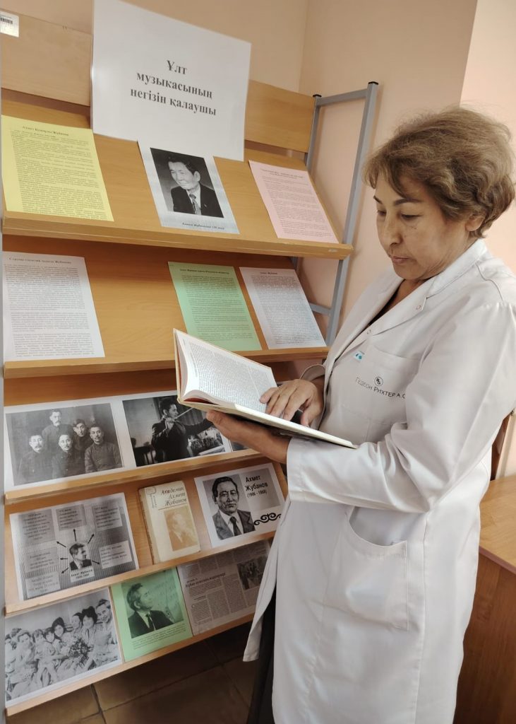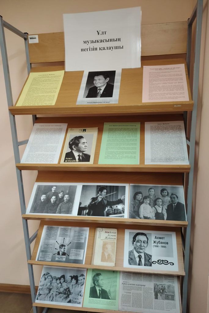 Информационно-методический отдел Научной библиотеки КазНМУ им. С. Д. Асфендиярова организовал книжную выставку, посвящённую дню рождения выдающегося казахского композитора, дирижёра, музыковеда и общественного деятеля Ахмета Жубанова.