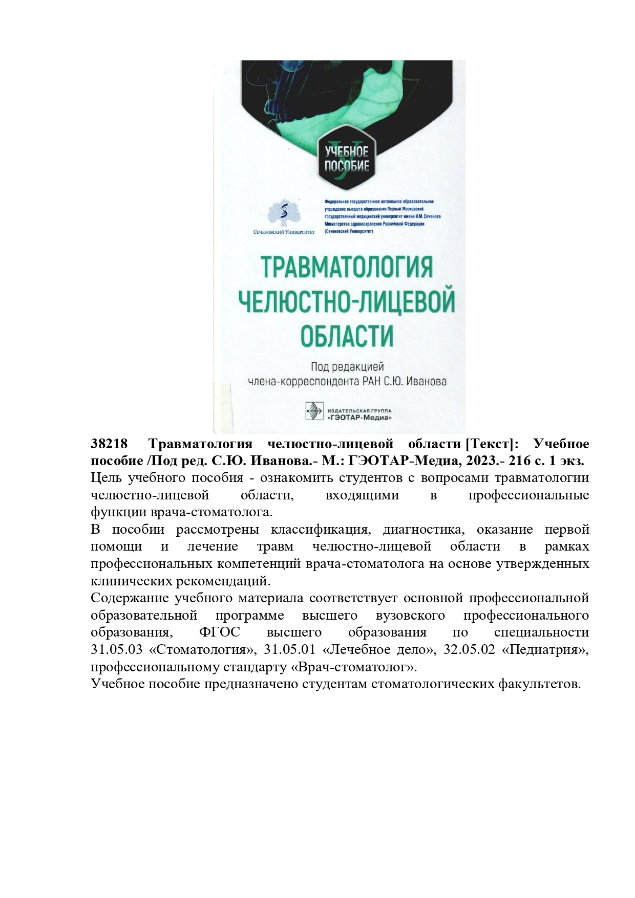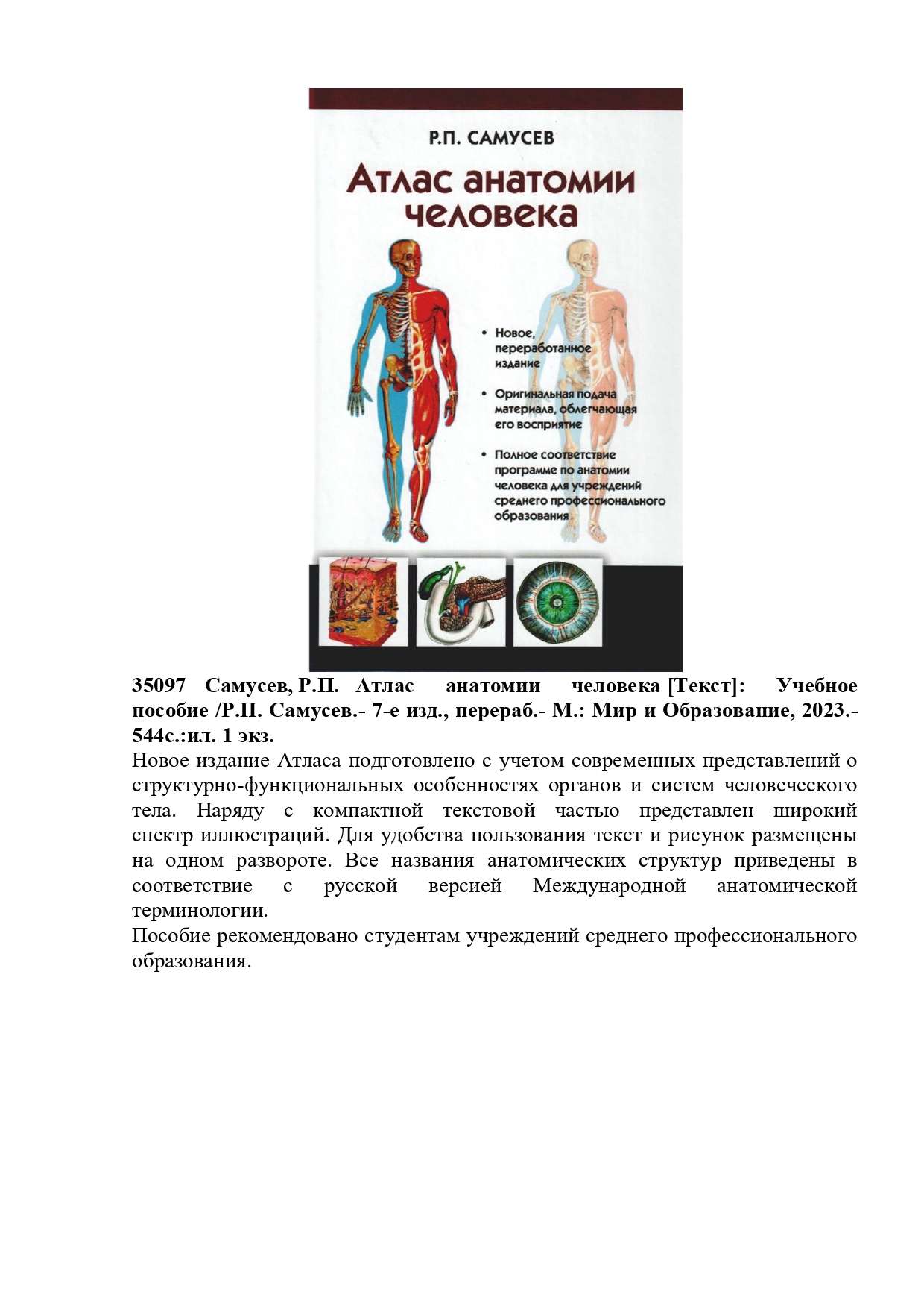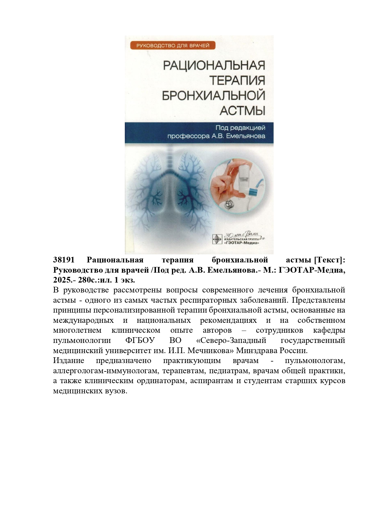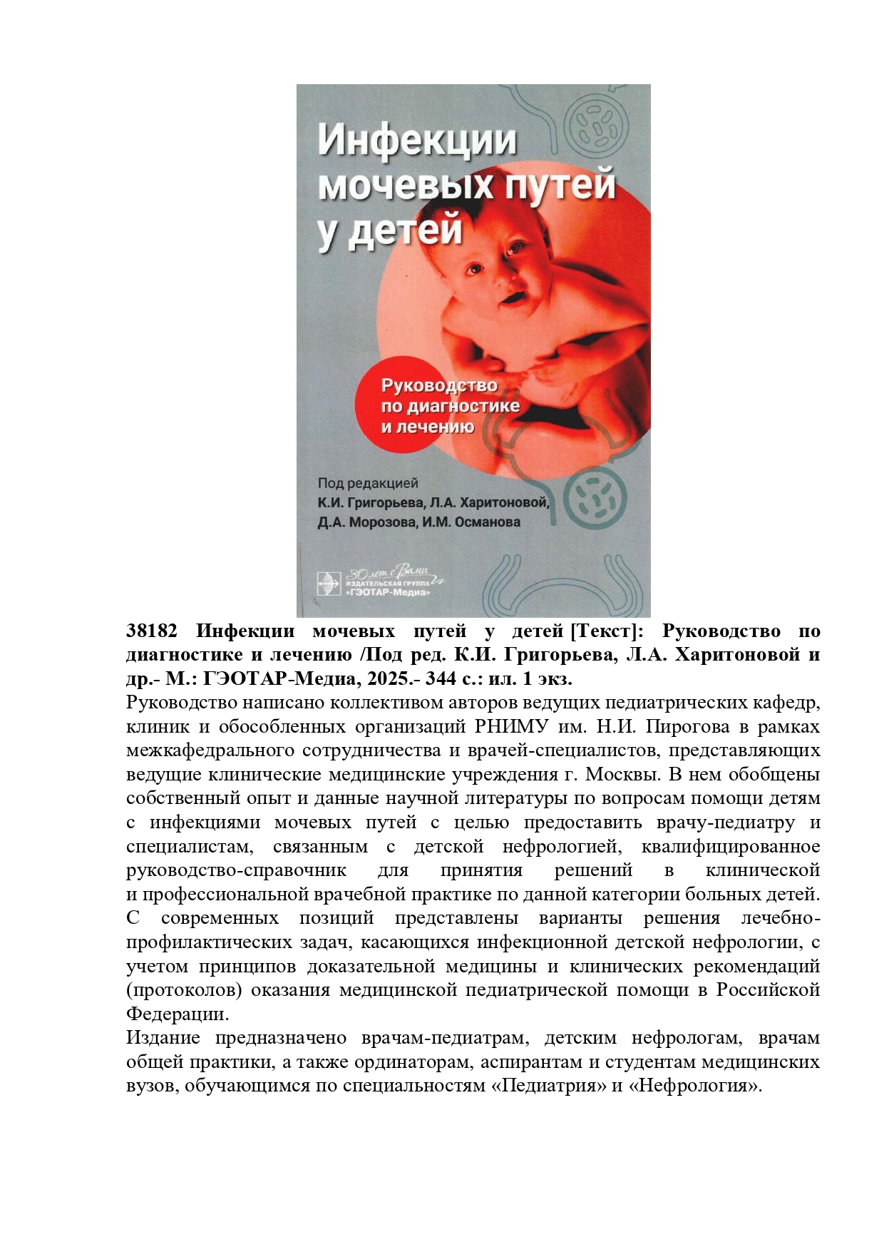 36290 Шарманов, Т.Ш. Маңызды микронутриенттердің рөлі және микронутриенттер тапшылығының алдын алу шаралары туралы: Дәрігерлерге арналған құрал. /Т.Ш. Шарманов, Ш.С. Тәжібаев, И.Г. Цой.- Алматы: Раритет, 2009.- 360б. 1 экз.