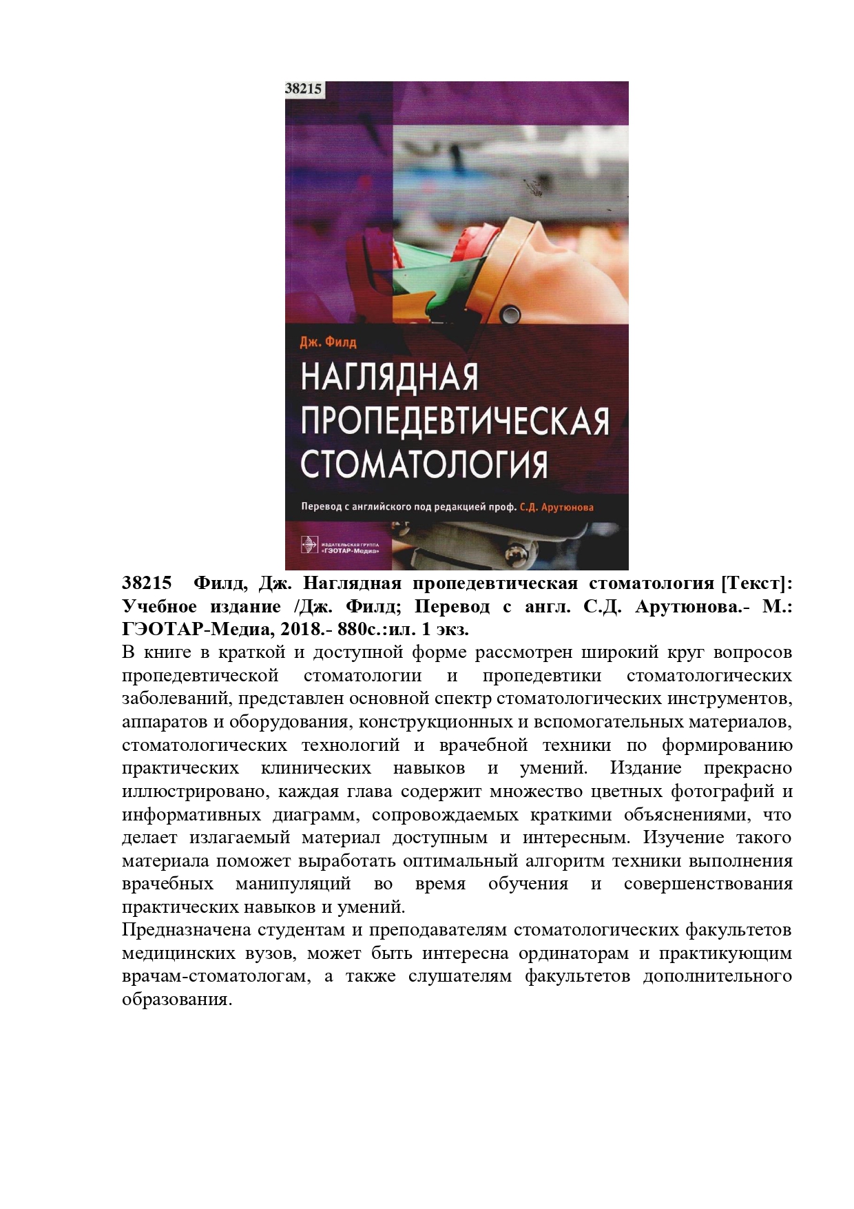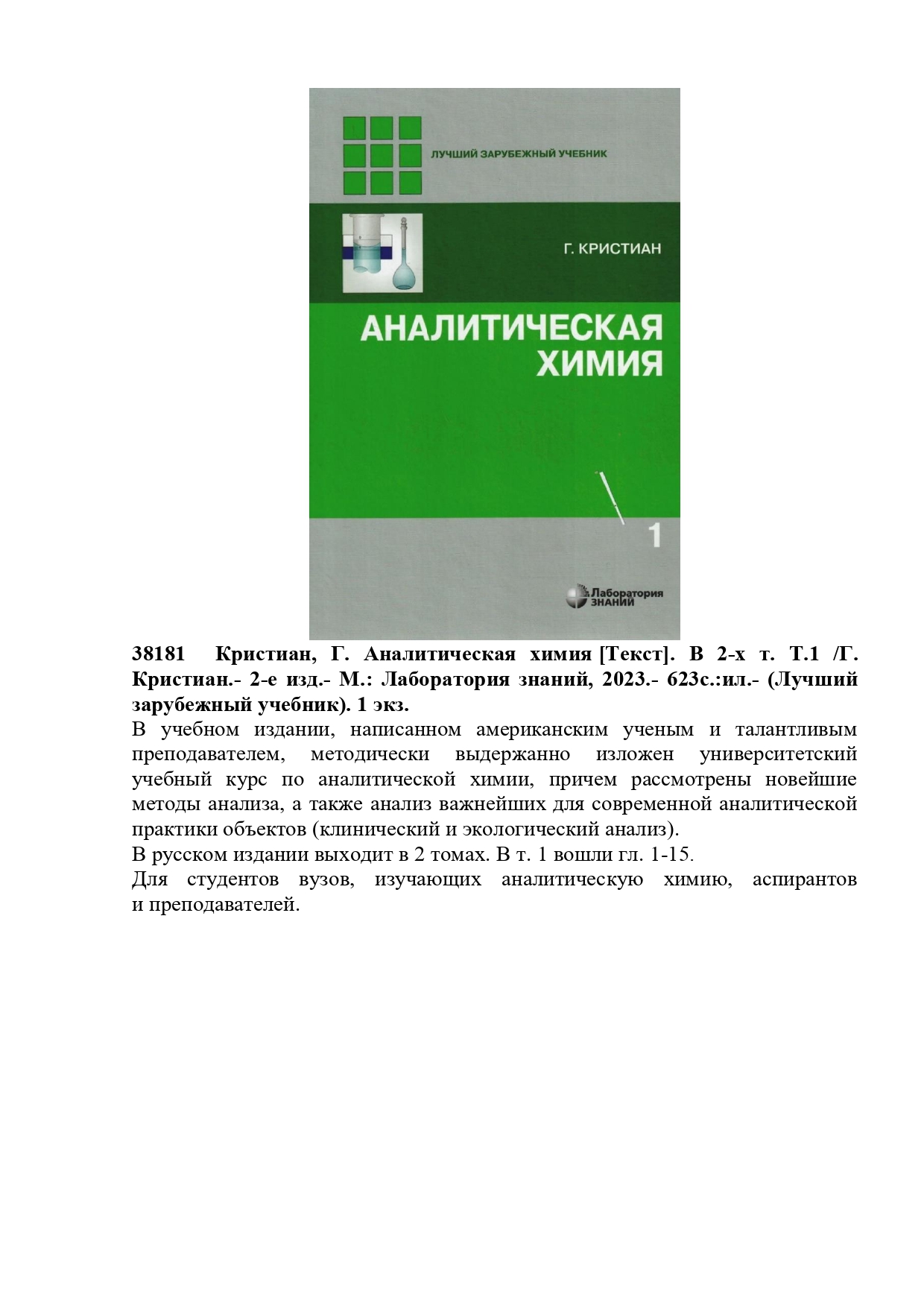 Ф81 Фрейлих, С.И. Кино теориясы: Эйзенштейннен Тарковскийге дейін: Оқулық = Теория кино: От Эйзенштейна до Тарковского. /С.И. Фрейлих; «Жаңа гуманитарлық білім. Қазақ тіліндегі 100 жаңа оқулық» жобасының ред.алқасы: Көшербаев Қ.Е.; Аудармашы: Меңдеке Ә.Н.- 8-ші басылым.- Нұр-Сұлтан: «Ұлттық аударма бюросы» қоғамдық қоры, 2020.- 412 б. 133 дана.